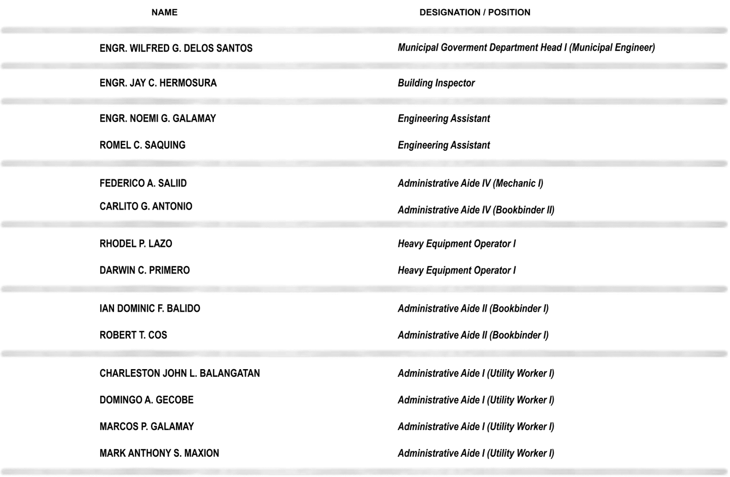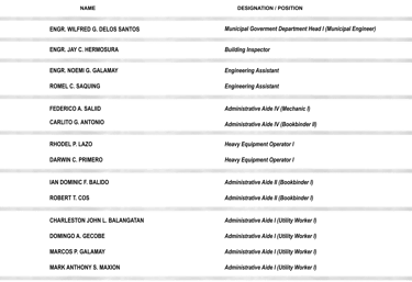 “To provide quality infrastructure project and services responsive to the needs of the constituents of the Municipality of Bayombong”